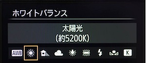 風景撮影においては、ホワイトバランスを「太陽光」という設定で撮影するとよいです。ホワイトバランスとは、撮影環境での光の色の影響を補正して、白を白く写すための機能です。晴天時の日陰で、太陽光にセットして撮影すると、このように青味が強調されます。他に、カラーフィルターのようにして色合いの調整に使うことも多くなっています。