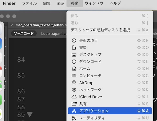 - Finderを開き、[アプリケーション]→[ユーティリティ]と進み、[スクリプトエディタ]を選択。