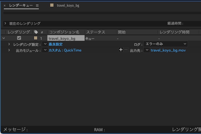 Quicktime)に変更されています。この設定でレンダリングします。