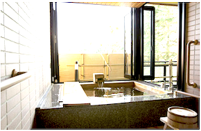 ○障害者対応客室:車いす利用者にも快適に過ごせる段差をなくした部屋です。和洋室でベッドで休むこともできます。浴室はスライド式のガラス戸を開け閉めすることで、露天風呂としても内風呂としても楽しめます。冬場はガラス越しに雪を眺めながら、夏は涼風を感じながら入浴できます。主室(12.5畳)+ツイン洋室+リビング(10畳程)+月見庭園【窓付源泉露天風呂付】