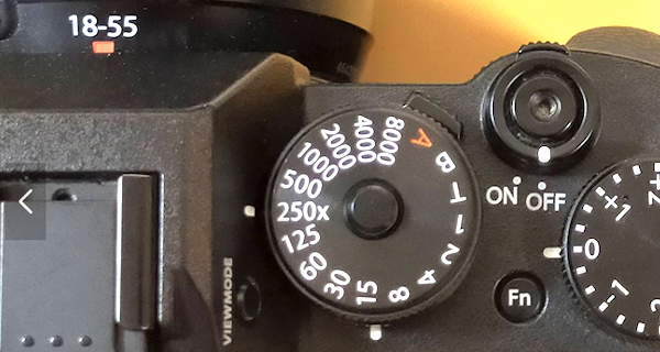 ミラーレス一眼カメラの上部に下図のようなシャッタースピードダイアルがあります。