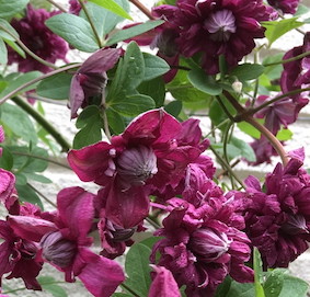 3品種ありますが、その中から入手しやすいクレマチス2品種ご紹介。開花期は5〜10月の四季咲きです。咲き方はチューリップ咲き・セミダブル・丸弁です。系統は、14系統ある中のテキセンシス(TS)・ビチセラ(BS)の2系統です