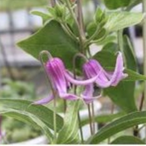 クレマチスのうち、花形がかわいいベル形の開花期・花径・花弁色・草丈・咲く枝・品種をご紹介しています。