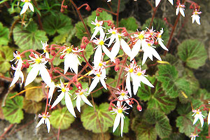星型の花を枝の先に沢山咲かせ、咲き始めは紫色で徐々に白色に変わる