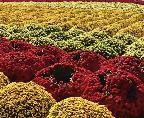 ざる菊は分枝性が菊の中で最大で、伏せたざる状に敵芯せずに自然に丸くなり、畑植えや鉢植えで栽培することができます。11月になると、神奈川県や福島県でざる菊の鑑賞会が開かれますが、畑植えが圧倒的に多く、管理人が知る限りでは大規模なものは1箇所です。