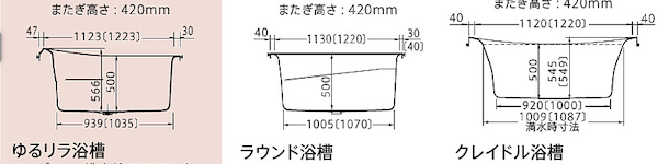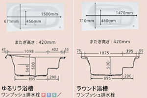 基本仕様では「ゆるリラ浴槽」「ラウンド浴槽」があります。