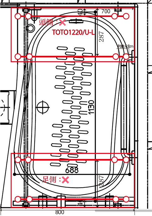 > U-LはTOTO1220ラウンド浴槽
