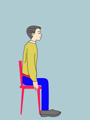 2番目は椅子に座って足を上げる運動(腸腰筋トレーニング)です。「背筋を伸ばして骨盤を立てること」が重要です。