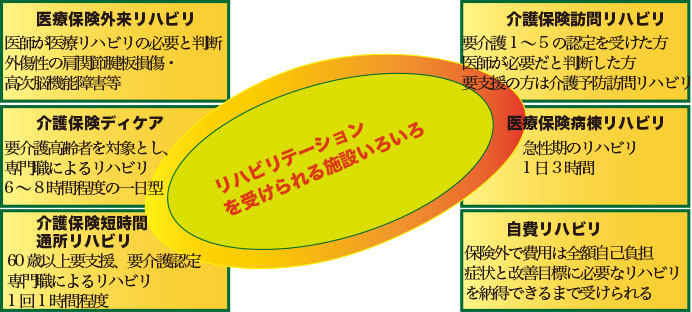 2019年3月で、要介護・要支援者に対する「医療保険の維持期・生活期の疾患別リハビリ料」が終了し、介護保険の(介護予防)訪問リハビリ・(介護予防)通所リハビリに完全移行することになりました。ただし、医師が「医療保険のリハビリ継続が必要」と判断した場合や「外傷性の肩関節腱板損傷」「高次脳機能障害」などの場合には、従前どおり医療保険のリハビリを受けることができます。