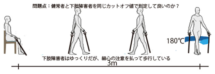 しかし、このテストは健常者と障害者を同列に扱っており、障害者は長年の経験から、健常者よりも遅くても自分が転倒を避けうる適切な速度で歩行しています。このことを判定者は自覚して欲しい。