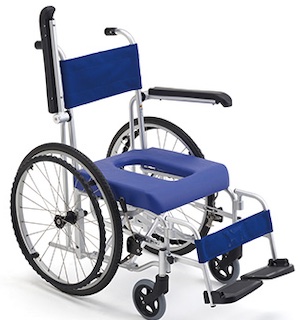 ほとんどのシャワーキャリーはハンドリムが付いていませんので、手で漕いで移動することはできません。従って、介助者に押してもらうか、足漕ぎするかしかありません。しかし、この3台だけはハンドリムが付いていますで、手で漕いで移動することができます。