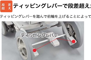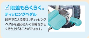 シャワーキャリーのテッピングバーは段差を乗り越える時に、介護者がテッピングバーを踏んで前輪を持ち上げて、段差を乗り越えやすくする大切な機能です。