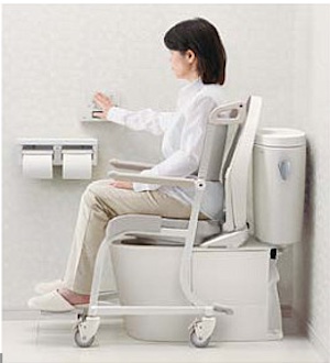 シャワトレシャワーキャリーは直接トイレ内に入り便器に差し込める形で、排泄と入浴どちらにも使用できるシャワーキャリーです。