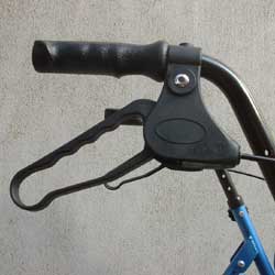 ハンドルには凹凸があり、ブレーキは輪になって滑りにくくなっています。