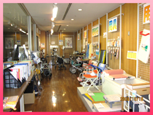 障害のある方や高齢の方が日常生活で利用できる車いすや入浴用具、歩行器、杖などの福祉用具、150点以上を常時展示し、実際に手にとって試すことができます。
