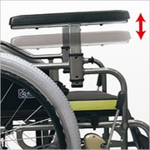 肘掛け(アームレスト)は、車いすの利用者が肘を置いたり、座位のバランスを補助したりするものです。アームレストは、車いすを乗り降りするときの支えにもなりますので、動作が安定します。