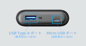 USB Type-Aポートはデバイスに合わせて最適な給電を可能にするSmartIC搭載のUSB Type-AポートでmicroUSB搭載のスマートフォンなどの機器を給電することができます。