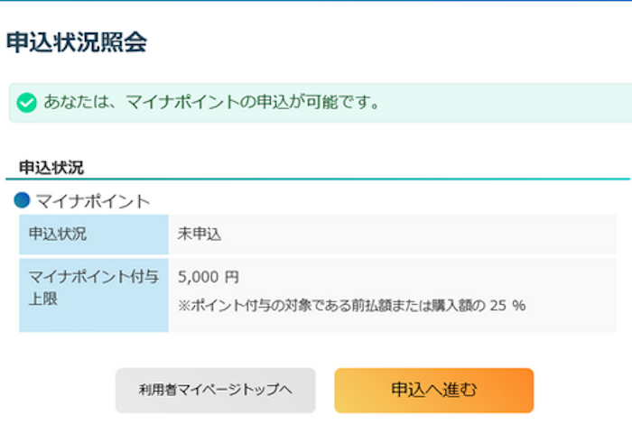 マイナポイントでは、あらかじめ選択したキャッシュレス決済サービス1つに対して、その決済を使った場合に還元が得られるので、まずはその選択が必要となります。