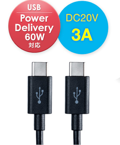 USB Type-CケーブルにもUSB 2.0の製品と3.0の製品といったUSB規格違いの製品がありますが、給電能力には関係ありません。