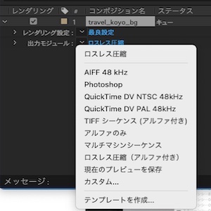デフォルトの出力モジュール(ロスレス圧縮)が出力モジュール(カスタム: