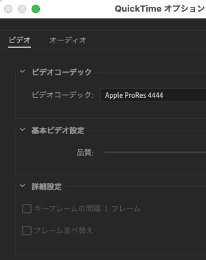 形式オプションをクリックすると、Quicktimeの画面が出てきます。