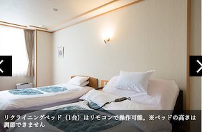 ○バリアフリールームが3部屋あります。客室内にお風呂があるお部屋もありお風呂は天然温泉になっております。バリアフリールームには電動ベッドがあります。シャワーチェア・シャワーキャリーも完備しております。