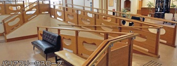 ○障害者対応エレベーター:上下階の移動は低位置ボタン付エレベータを利用。