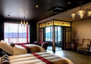 ○障害者対応客室:湖眺望6階にある美湖の雫 露天風呂付き客室スイート(75㎡(ベッドルーム50㎡+その他25㎡)、定員:4名)、2022年8月にリニューアル。お部屋は幅広い方にご利用いただけるユニバーサルデザイン仕様の露天風呂付きスイートルームです。障がいなどの有無にかかわらずどなたでもご予約いただけます。