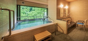 ○露天風呂は露天風呂入口手前に6段の階段があります。(車いす不可)露天風呂内浴槽、露天風呂入口手前の階段には手すりを設置しております。備品はございません。