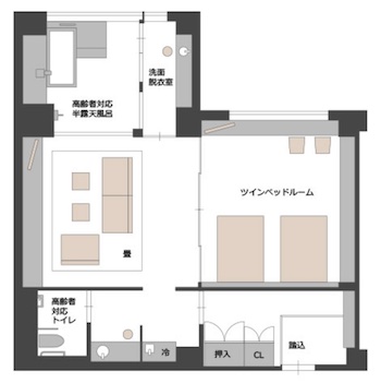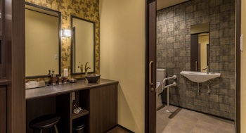 ○バリアフリールーム:すべての方にやさしいバリアフリー(ユニバーサル)仕様の401半露天風呂付和洋室。広さ80㎡/定員2〜5名。2018年12月にリニューアルしたバリアフリー客室です。車椅子の方や、高齢の家族同伴でのご旅行に高級感あふれるお部屋の雰囲気など、お部屋の機能性だけにとどまらない非日常感あふれる旅への憧れも大切におもてなししたい。和洋室内浴室は車椅子で洗い場や浴槽に近づけ、シャワーチェアの無料貸出しがあり、浴槽脇には腰掛けスペースと手摺があり。シャワーチェアについて、2023年の数件の口コミで「シャワーチェアが無かった」と書かれているので、予約前に確認してください。