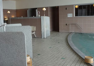 大浴場入口には車いす用スロープがあり脱衣室まで車いすで移動できます。大浴場内にはシャワーチェアと手すりがあり、両手杖で少し歩ける管理人は入浴できました。