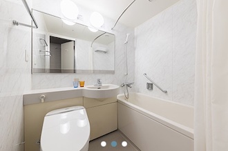 ○JR大船駅より徒歩3分。鎌倉駅まで7分、江ノ島まで湘南モノレールで14分、横浜駅15分、羽田空港はリムジンバスで60分 一般ルームのバスルーム。