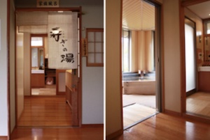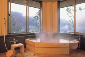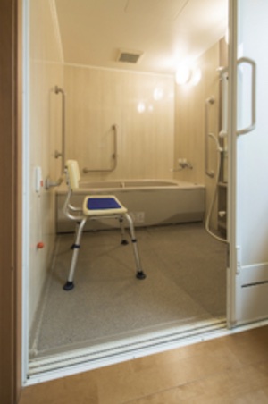 バリアフリー対応の貸切風呂「寿ぎの湯」があり。移乗台・シャワーチェアで障害者も湯船に入れる。