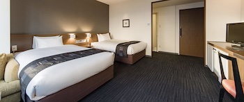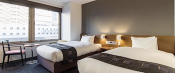 ○障害者対応客室部屋:広さ36㎡・定員2名のユニバーサルツインルームは車椅子にてホテル入口から段差等の障害が無くお部屋まで移動でき、バスルームは車椅子の入室が可能で、シャワーチェアがあり、バスタブは腰がかけられるほど広く、縁を跨げない障害者でも入浴が可能です。ベッドサイズ:ベッド幅120cm×長さ200cm。