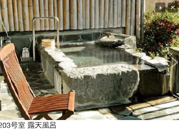 ○障害者対応客室部屋:バリアーフリー和洋室1室(203号:客室定員は2~5名)テラスに温泉付き。部屋の広さは洋室16畳、和室6畳。トイレと、テラスには天然温泉(半露天風呂・手すり付き)・シャワーチェア常時設置があります。ベッドに直接車椅子をつけられるスペースも十分あります。和室(約15センチ高)もあり、十分な広さが確保されています。