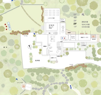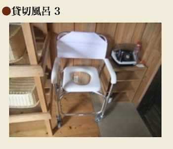 ○バリアーフリー対応の鹿の湯も、ロビーから、バリアーフリーで、湯船まで車椅子で行けます。手摺もある半露天式天然温泉です。シャワーチェア貸出あり。