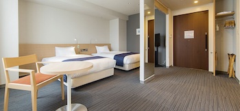 ○障害者対応客室部屋の広さ:32㎡・定員数2名のユニバーサルツインルームは車椅子にてホテル入口から段差等の障害が無くお部屋まで移動でき、バスルームは車椅子の入室が可能で、バスタブは腰がかけられるほど広く、縁を跨げない障害者でも入浴が可能です。通路幅を広く確保し、スイッチや家具の配置にもこだわるなど、やさしく使いやすいお部屋を目指しました。 障がいをお持ちの方、お年を召した方、お子さま連れなど、どなたにもおくつろぎいただけます。