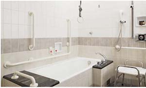 バリアフリールームの浴室には入浴補助具としてシャワーチェア・浴槽用手すり・バスボードがあります。
