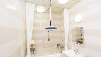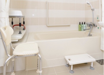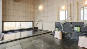 ○大浴場・露天風呂・貸切風呂(介護機能付き)あり。大浴場は浴場入り口の段差:なし・脱衣所から洗い場への段差:なし・洗い場から浴槽への段差:3段以下・浴槽へ入る際の手すり:あり・洗い場に高めの椅子:一部あり。貸切風呂(介護機能付き)は車椅子を利用の方に便利な浴室用車椅子を完備しております。高さのあるシャワーチェアーも用意しており、入口の段差:なし・脱衣所から洗い場への段差:なし・洗い場から浴槽への段差:なし・浴槽へ入る際の手すり:あり・洗い場に高めの椅子:一部あり。