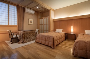 ○障害者対応客室:ユニバーサルデザイン(バリアフリー)に対応したフローリングフロアのツインベットルーム(定員:2名)があり。