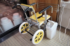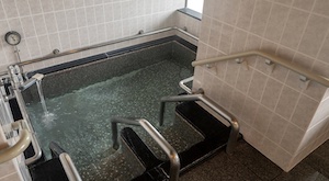 ○大浴場には、浴用車椅子、シャワーチェアをご用意いたしております。入口の段差:なし。脱衣所から洗い場への段差:3段以下。洗い場から浴槽への段差:3段以下。浴槽へ入る際の手すり:あり。