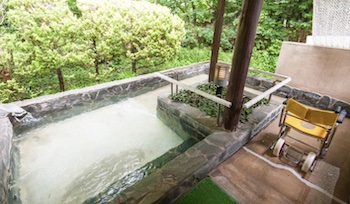 「入浴用車椅子で浴槽内スロープを降りる」では、 立ち姿勢を保持できず、入浴用車椅子に乗ったまま浴槽内スロープを降りて、浴槽に入ることができるバリアフリーの宿をお探しの方に、これらの入浴設備があるバリアフリーの宿の設備状況をご紹介しています。