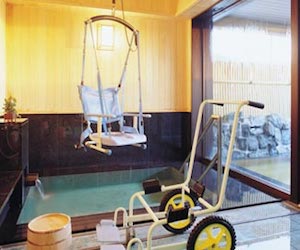 分離型入浴用車椅子(シャワーキャリー)+リフトによる入浴方法は「揺れ」が大きいのが欠点です。一方、長所は使用する分離型入浴用車椅子(シャワーキャリー)は浴室内を移乗なしに何回でも移動できることです。注意すべき点は吊り上げられた状態での安全確保のためのベルトの調整です。使う人の体型を連絡して、宿泊施設に事前調整を依頼しましょう。逆に言うと、このリクエストに応えられない宿泊施設なら、キャンセルした方が懸命です。リフトの種類によって操作方法・使用方法が異なるため、事前に宿に操作方法・使用方法を確認しておきましょう。介助は同行者が行う、宿泊先スタッフが行う、有料のヘルパーの手配ができるなど、さまざまです。