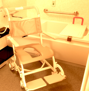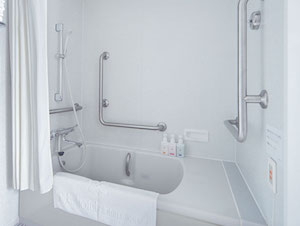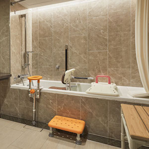しかし、立ち姿勢を保持できる車椅子使用者が使えるお風呂にはその前に大きなハードルがあります。それは利用者の障害の状態に応じて、「浴室内を安全に移動したり、浴槽に入ったり、シャワーを使う」ことができるか否かということです。
