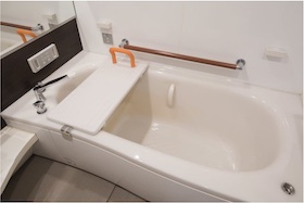 日本の湯船の高さは50〜55cmもあり、管理人は自宅でも自分の体力で湯船に浸かれずに、リフトは過剰設備ですが、バスボードを使用しています。バスボードに代わる入浴補助具として、外付けの移乗台や広い湯船の縁があります。ここまで確認できればOKです。 - 最後に可能な選択肢があれば非日常:一昔前のバリアフリールームは、窓もない布団部屋のようなイメージもありましたが、近年は入浴用リフトが景色が見えるような角度で設置されているなど、バリアフリールームや客室風呂や貸切風呂からの眺めも重要視している宿泊施設もありますので、当該宿泊施設に泊まれると、車椅子旅行の醍醐味である「非日常」を満喫できるでしょう!