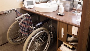 しかし、車いすユーザーにとっては床に段差がなく、段差がある場合は緩やかなスロープが設置してあり、館内を上下移動するための車椅子対応エレベーターがあり、室内を車椅子で自由に移動できるバリアフリールームがあり、トイレも車椅子のまま入れ手すりがついており、日本の高い浴槽の縁を超えて入浴できる入浴補助具あることがバリアフリーなのです。そしてさらに非日常も全く無視することはできません。