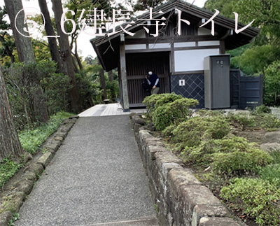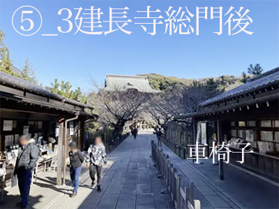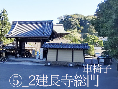 建長寺は車椅子参拝が非常にしやすいです。県道21号横浜鎌倉線の道路脇に入口の門(天下門)があり、門の下は段差のない舗装路で車椅子総門前まで行けます。総門からの入場は段差(3段)がありますで、車椅子の場合は総門の右脇(ゲートがあり)から入場します。総門を入るとすぐ右側に拝観受付があります。