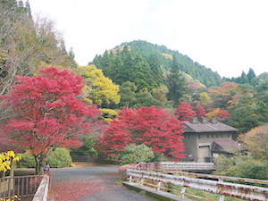 香嵐渓広場の先の香嵐香積石寺周辺は階段や急坂が多く車椅子では無理です。