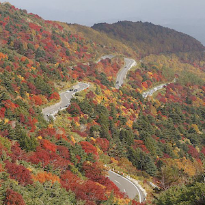 ○那須岳の紅葉は山頂や那須岳ロープウエイから見るほかに、那須岳をほぼ全線から望むことができる、ボルケーノハイウェイから見ることもできます。ボルケーノハイウェイは那須湯本を起点に奥那須温泉郷全長約10.4kmを一周するルートです。正式名称は那須高原有料道路です。