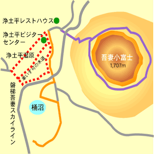 ○磐梯吾妻スカイラインの途中には作家・井 上靖が名づけたという、「天狗の庭」をはじめとする吾妻八景が点在。天狗の庭から遠く吾妻小富士を望む紅葉は格別の美しさ。中間点の浄土平で休憩と秋色の散策を楽しめる。浄土平湿原散策路は裏磐梯の吾妻小富士の裾野にある浄土平湿原を楽しめるバリアフリーコースです。駐車場からすぐに湿原に入れます。5月~9月までイソツツジやイワカガミなどの高山植物を観察することができます。車椅子が通れる木道も整備され、障害者や高齢者などのハンディに優しい散策路です。桶沼は新緑とハクサンシャクナゲ咲く夏、紅葉の頃がよい。